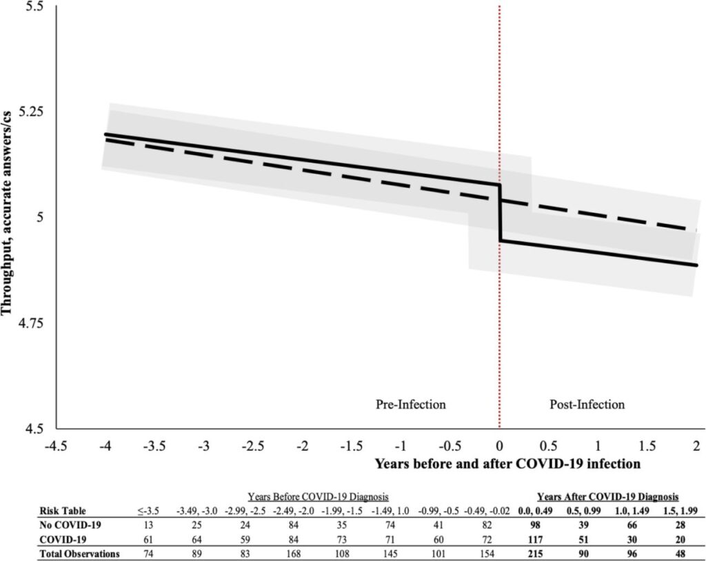 SARS-CoV-2-Infektion verursacht geistige Alterung um 10 Jahre COVID Info, 11. November 202311. November 2023 Bei den Personen, die symptomatische COVID-19-Infektionen hatten, fanden wir Hinweise auf dauerhafte Veränderungen der kognitiven Funktionen, die 10,6 Jahren normalen Alterns entsprechen, und einen Anstieg der Zahl der Teilnehmer mit leichter kognitiver Beeinträchtigung um 59,8 %. Diese Ergebnisse deuten auf eine Zunahme der kognitiven Dysfunktion und einen schlechteren Gesundheitszustand des Gehirns nach COVID-19 hin, vor allem bei Patienten mit einem schwereren Verlauf oder PASC. Bei Patienten mit schweren COVID-19-Verläufen wurden transkriptomische Veränderungen in ihrem präfrontalen Kortex festgestellt, die denen älterer Menschen ähneln, und es kam zu einem Rückgang der globalen kognitiven Leistung, der mit der Abnahme einhergeht, die sich normalerweise über 10 Jahre normalen Alterns erstreckt, was mit den Ergebnissen unserer Studie übereinstimmt. Langsamere Reaktionen, geringere Verarbeitungsgeschwindigkeiten und eine schlechtere kognitive Leistungsfähigkeit sowie ein schlechteres visuelles Gedächtnis sind bereichsspezifische Ergebnisse dieser Studie, und diese Funktionen sind für alltägliche Aktivitäten erforderlich. Die Reaktionsgeschwindigkeit ist für die Vermeidung von Unfällen und Stürzen bei älteren Erwachsenen von entscheidender Bedeutung, und eine verringerte Verarbeitungsgeschwindigkeit und eine Störung des Arbeitsgedächtnisses werden häufig mit Veränderungen im Rechenvermögen und schlechteren finanziellen Entscheidungen bei älteren Erwachsenen in Verbindung gebracht. […] Monetäre und funktionelle Verschlechterungen sind bis zu 6 Monate nach einem Krankenhausaufenthalt aufgrund von COVID-19 üblich. […] Im Gegensatz zu Dyspnoe und Depression gibt es für postvirale Müdigkeit und kognitive Beeinträchtigung keine wirksamen Therapien. Die neurologischen Grundlagen der PASC-bedingten Müdigkeit und kognitiven Beeinträchtigung sowie die damit zusammenhängenden Faktoren und Ursachen zu ergründen, ist von entscheidender Bedeutung, da sie sich möglicherweise negativ auf die Wirtschaft auswirken und die Lebensqualität beeinträchtigen können. Patienten, insbesondere solche mit PASC, sollten daher routinemäßig mit Instrumenten untersucht werden, die in der Lage sind, leichte kognitive Anomalien zu erkennen. Demenz und kognitiver Verfall sind nur einige der vielen langfristigen neurologischen Erkrankungen, die mit neurotrophen Atemwegsviren in Verbindung gebracht werden. COVID-19 kann schwerwiegende Verhaltensprobleme hervorrufen und erfordert aufgrund der Neuroinflammation, die bei vielen neurodegenerativen Erkrankungen auftritt, eine genaue neurologische und psychiatrische Überwachung. ASSESSMENT AND CHARACTERIZATION OF COVID-19 RELATED COGNITIVE DECLINE: RESULTS FROM A NATURAL EXPERIMENTBackground Cognitive impairment is the most common and disabling manifestation of post-acute sequelae of SARS-CoV-2. There is an urgent need for the application of more stringent methods for evaluating cognitive outcomes in research studies. Objective To determine whether cognitive decline emerges…Weiterlesenwww.medrxiv.org Forschung Gehirn